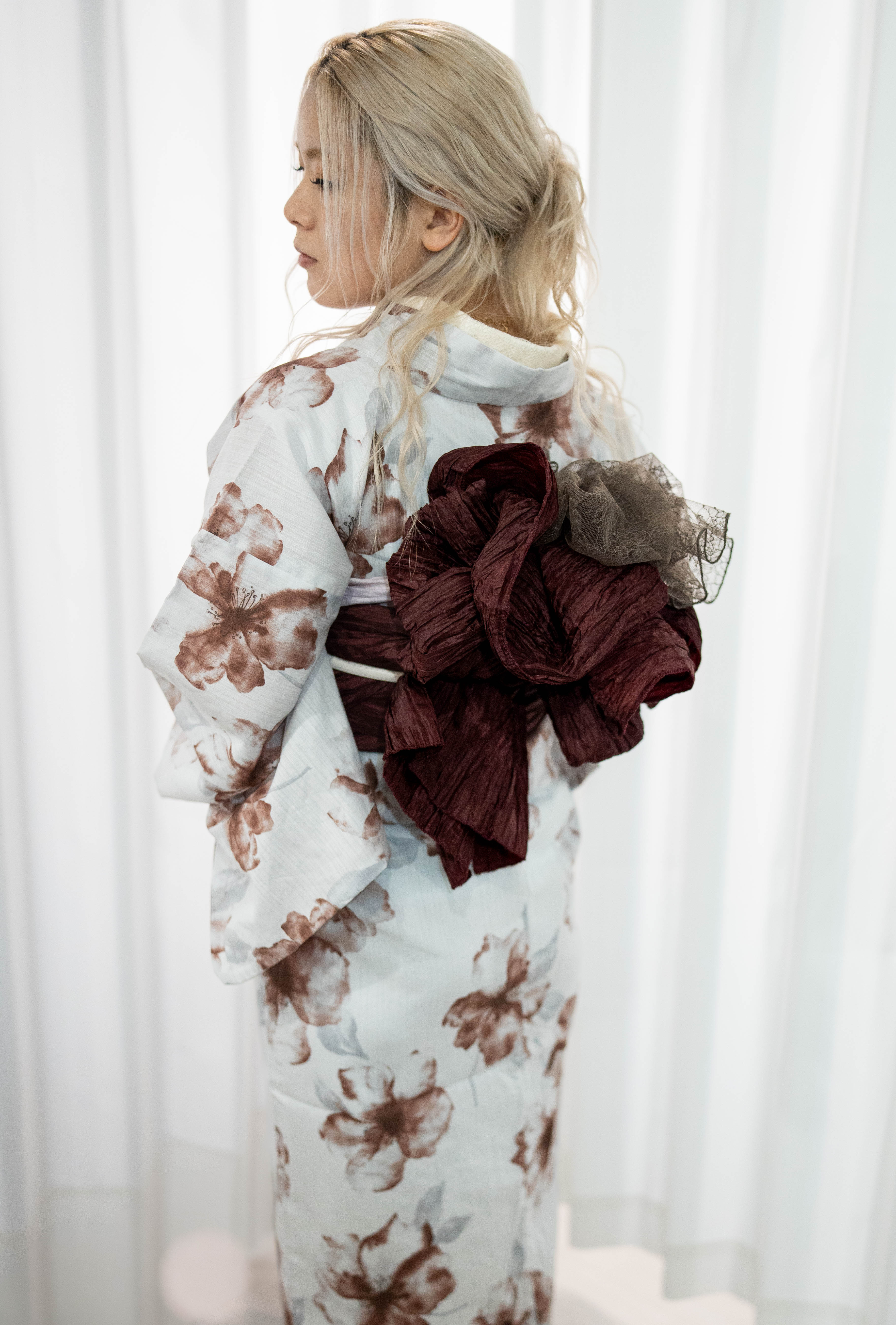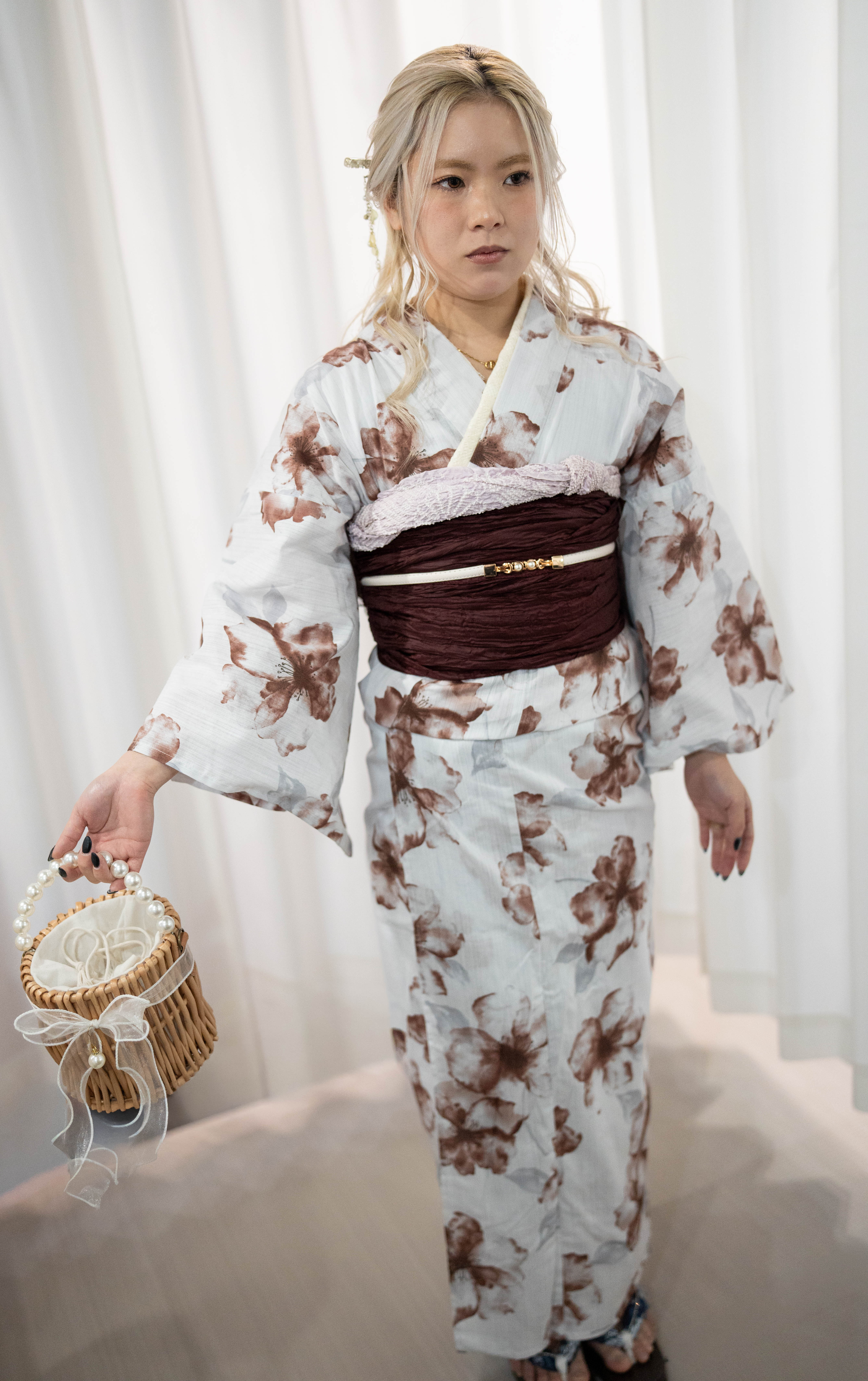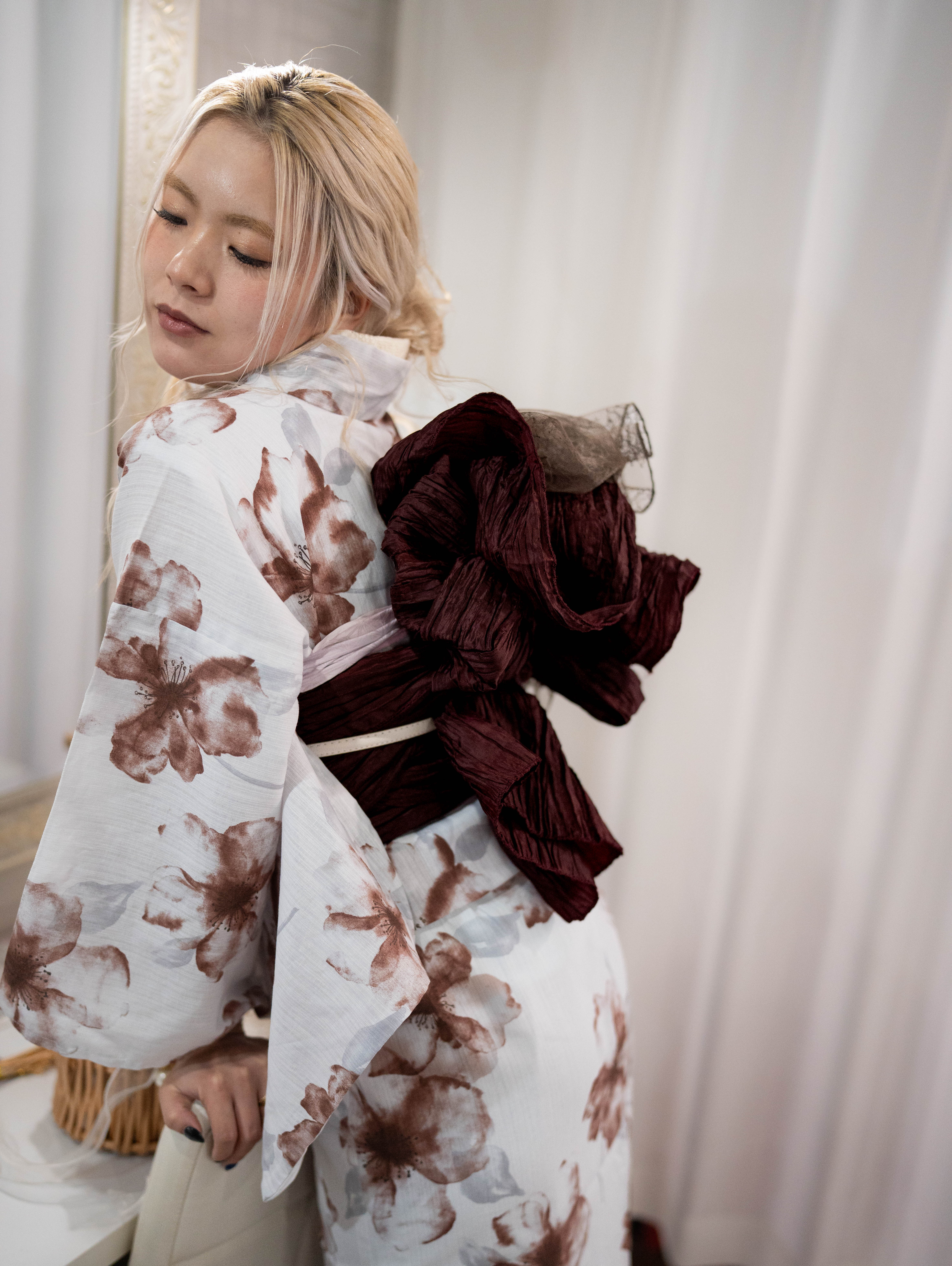 ・浴衣:青み白地 × くすみブラウン