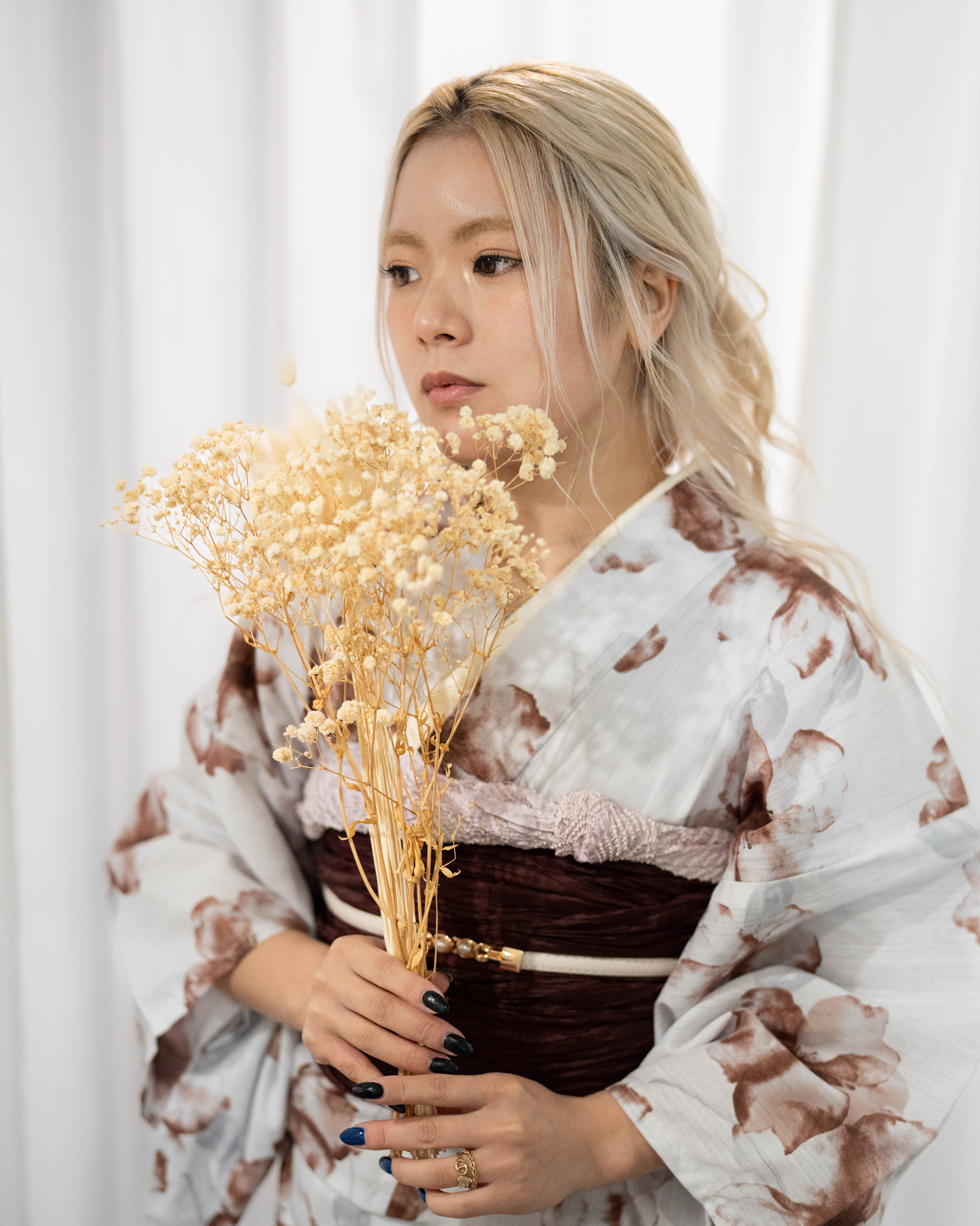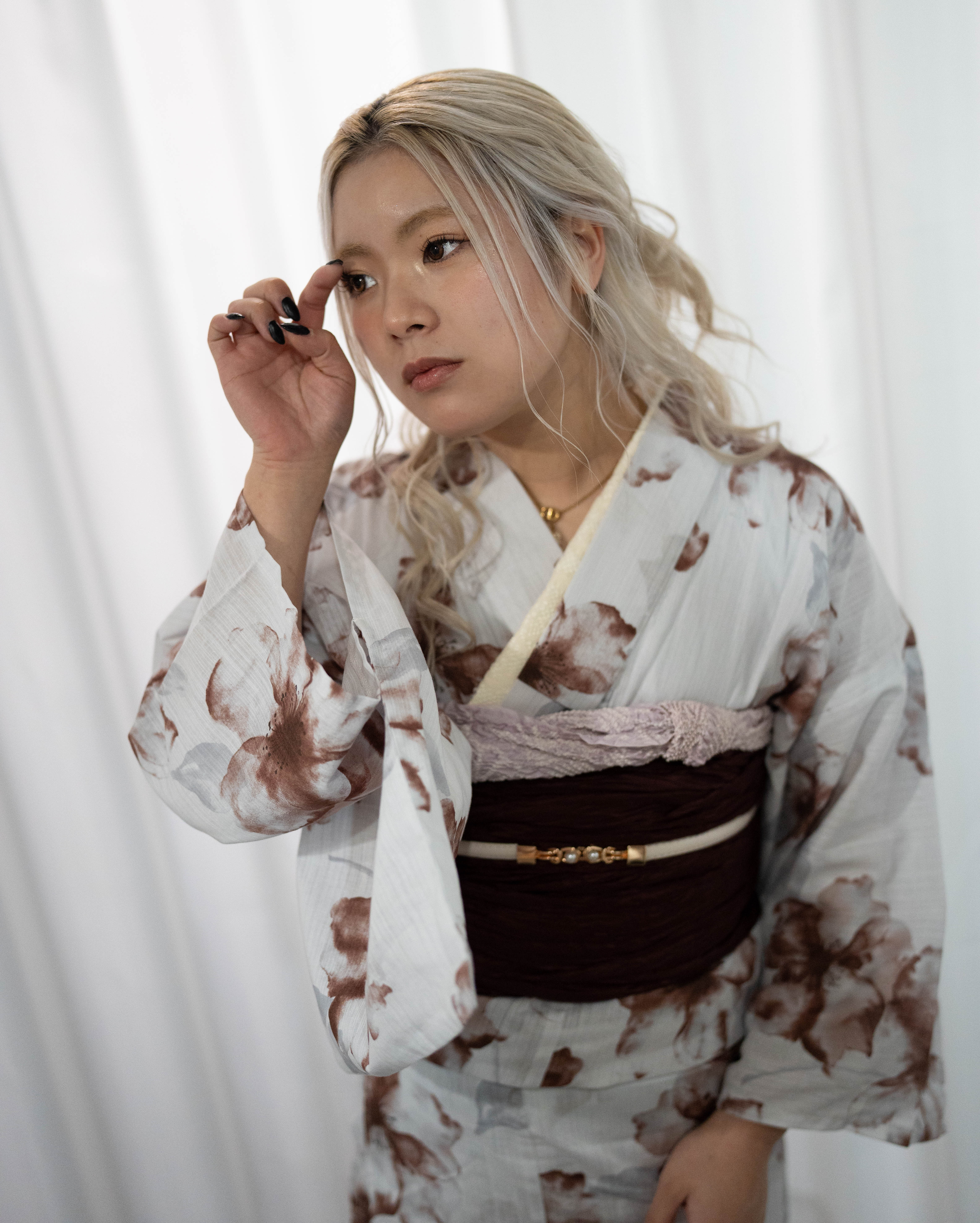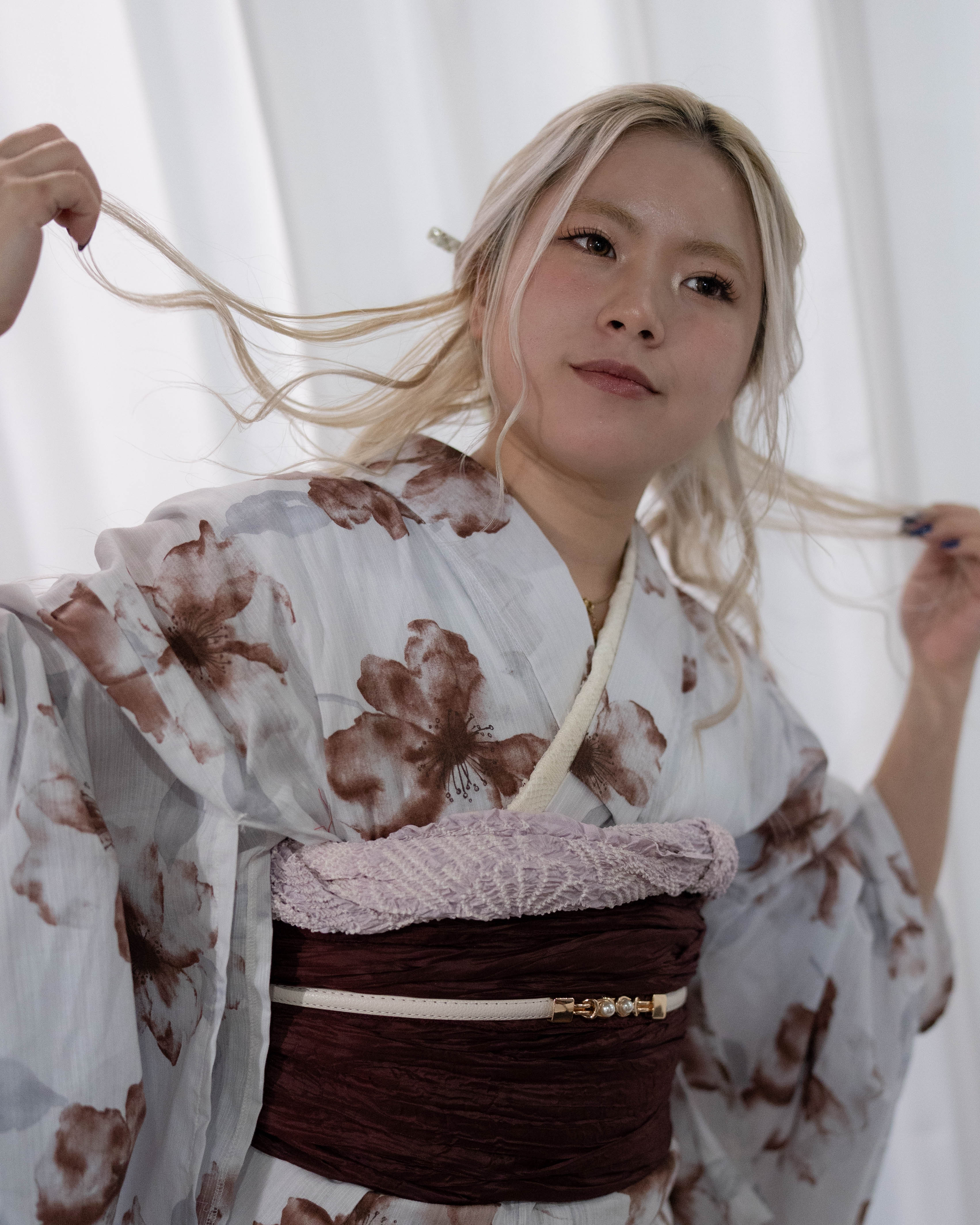 ・浴衣:青み白地 × くすみブラウン