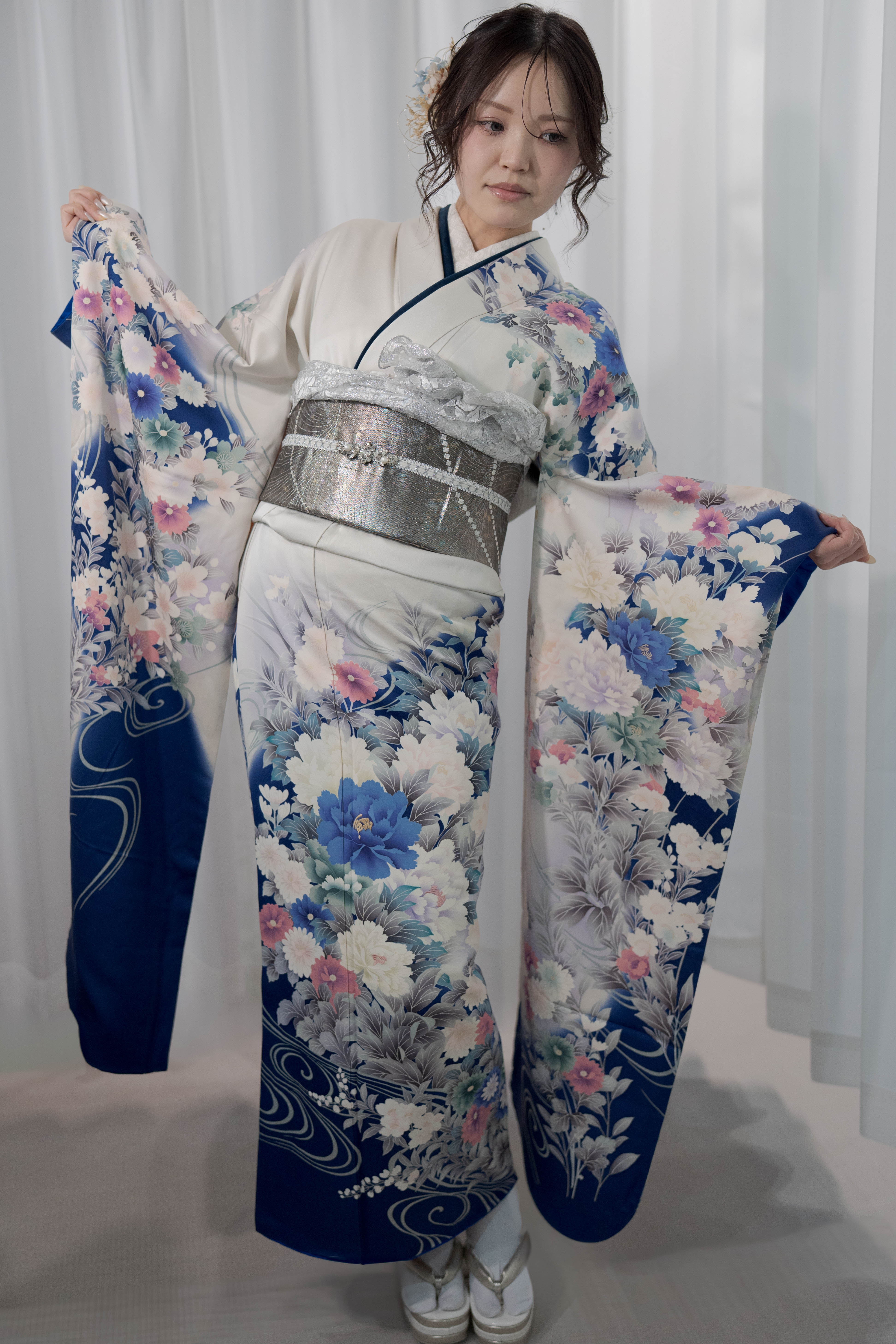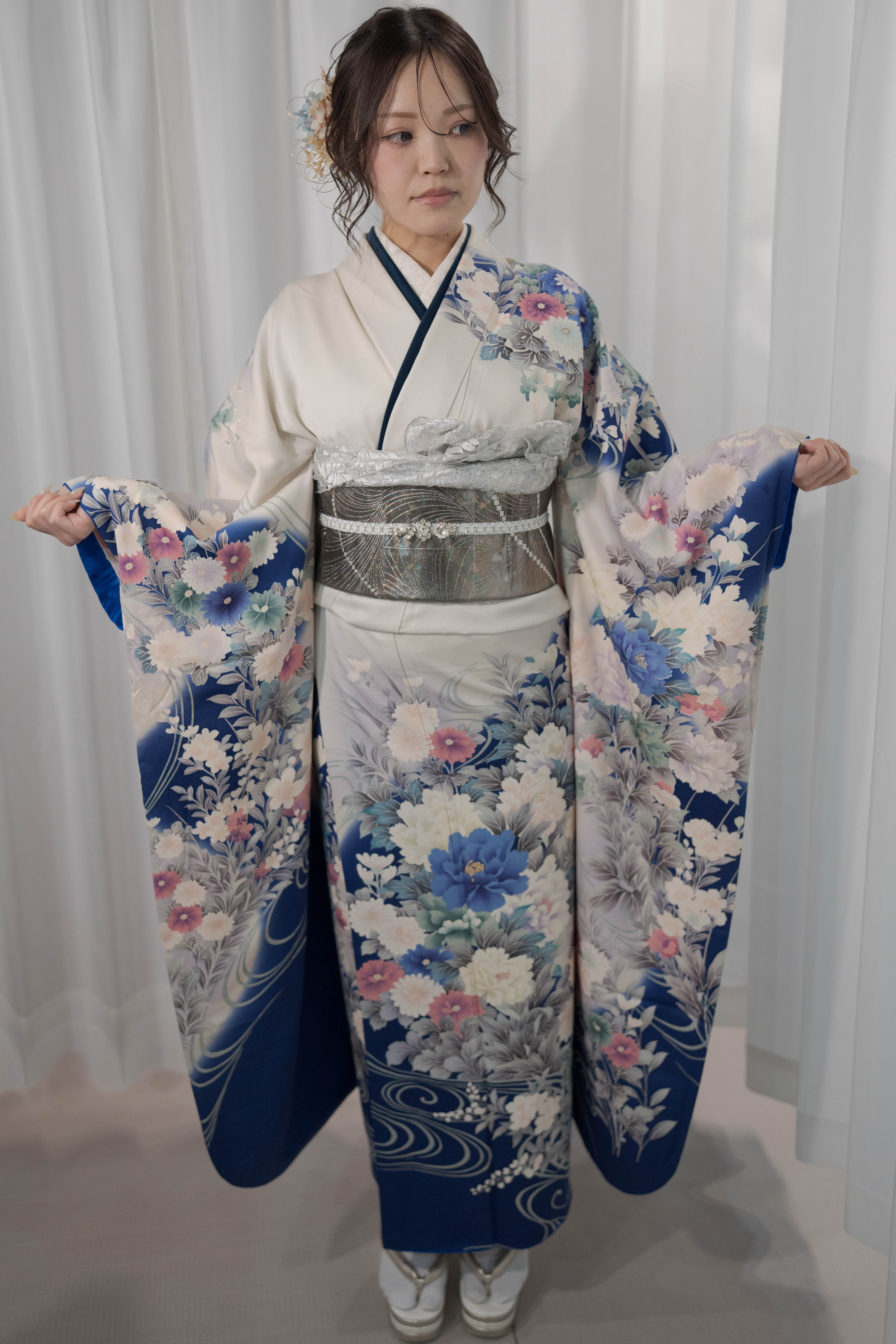 透明感と気品を纏う、洗練された振袖スタイル。